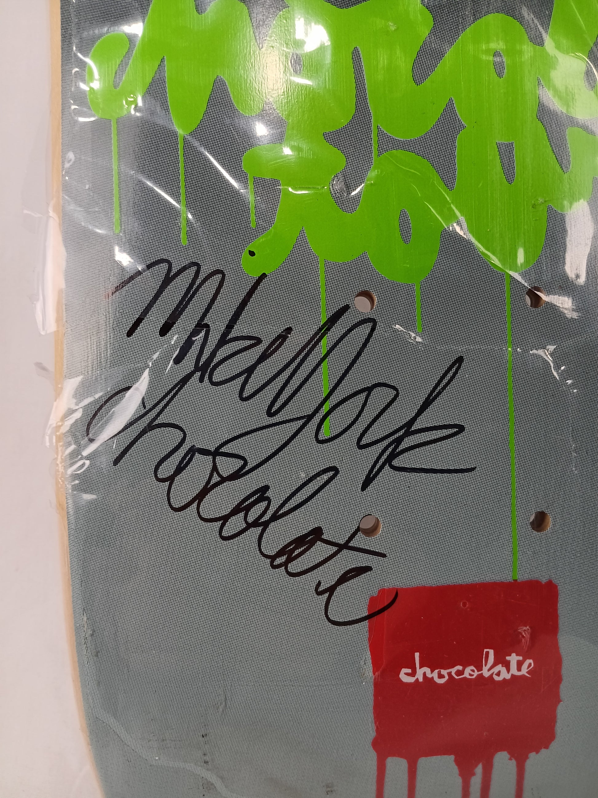 Chocolate Mike York Autographed Chocolate Tour Green/White 7.625" Vintage NOS Deck