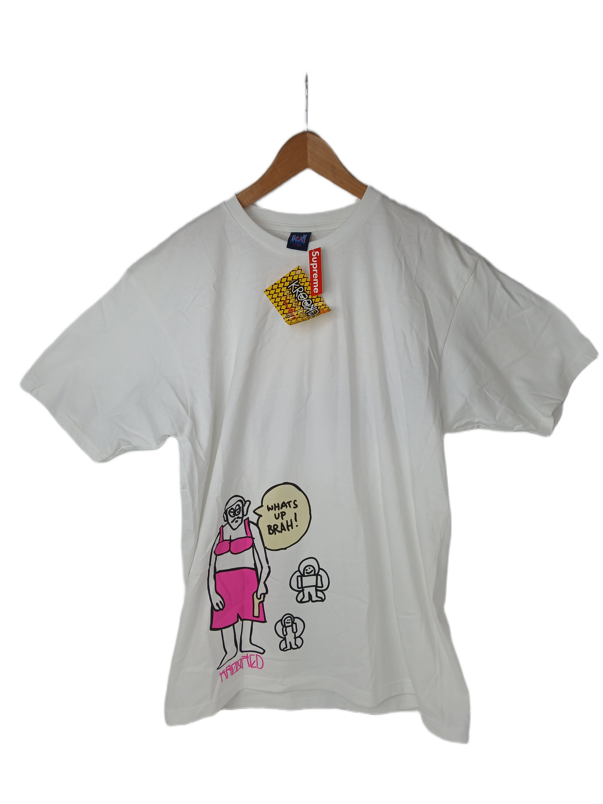 Krooked What's Up Brah! White Black Pink Size XL Vintage S/s Shirt