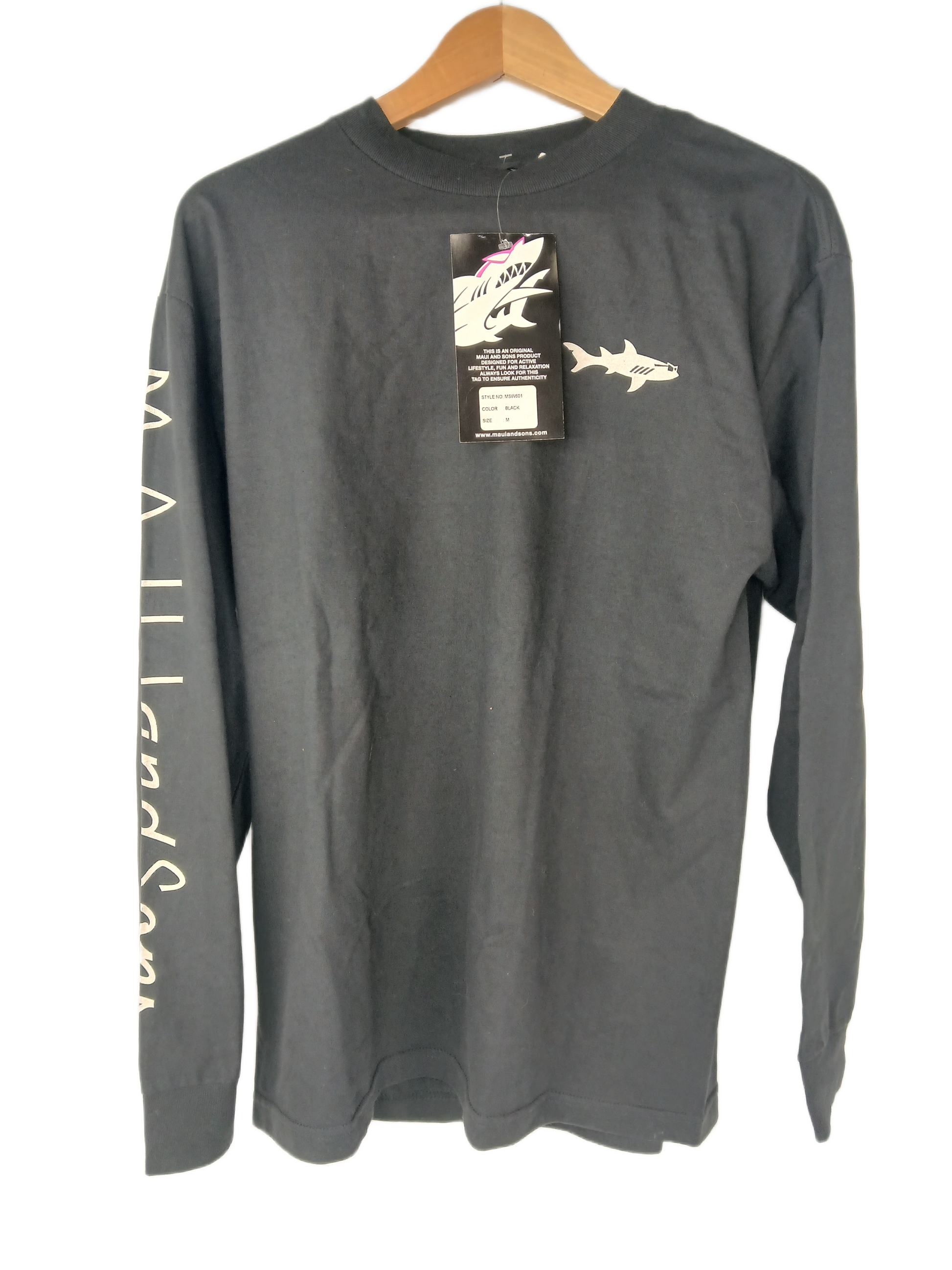 Maui And Sons Shark Chest Logo Black Size M L/s Shirt