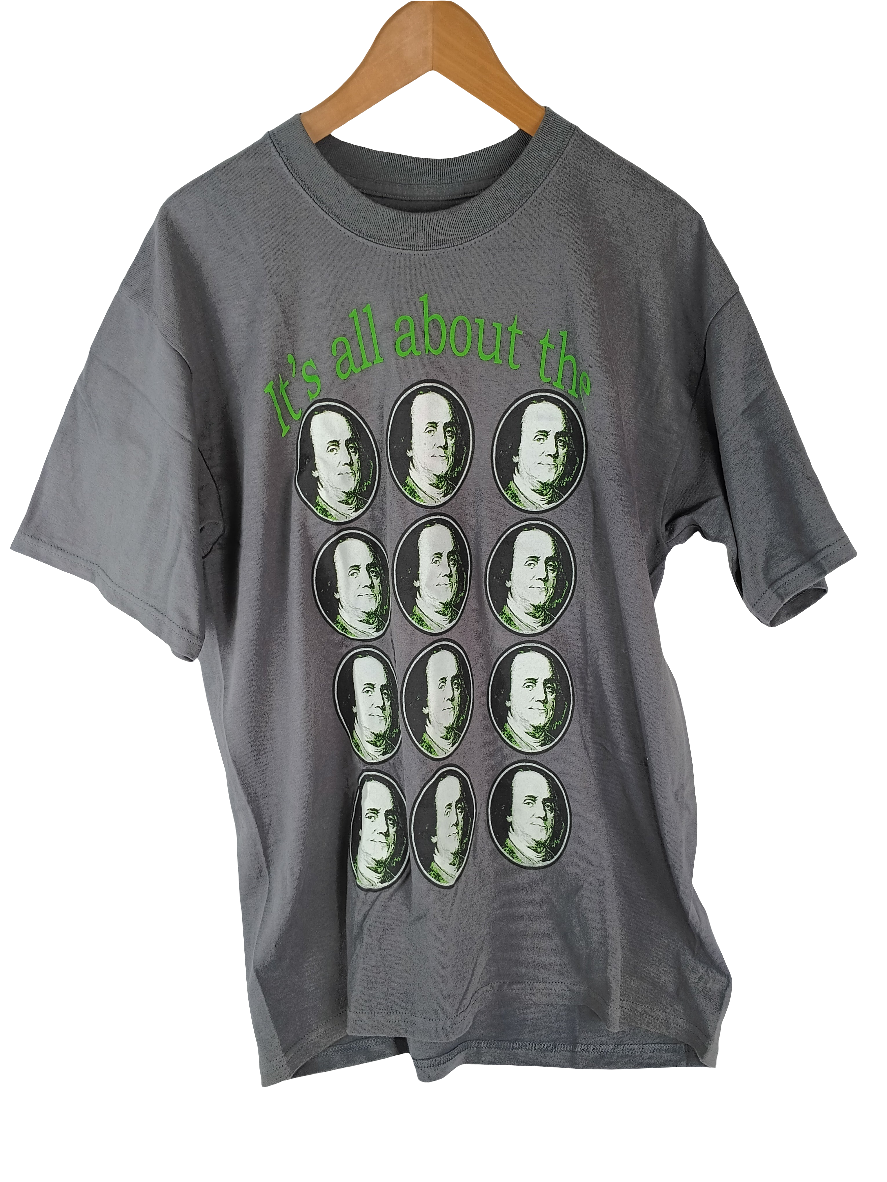 Once Upon A Time It's All About The Benjamins Green Gray White Mens Size Large S/s Vintage Shirt