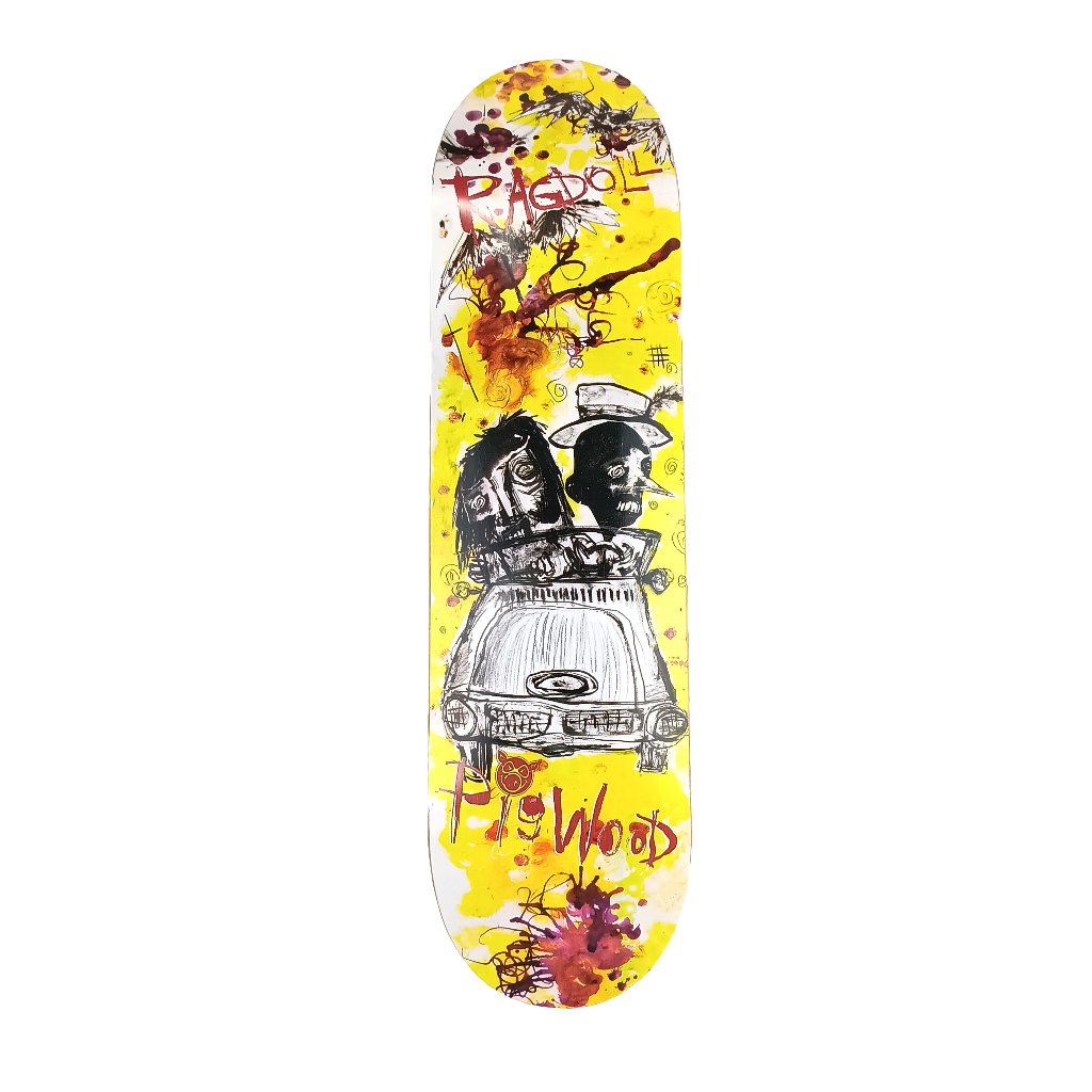 Pig Wood Ragdoll Car Zombies Red White Yellow Size 8.38" Vintage NOS Deck