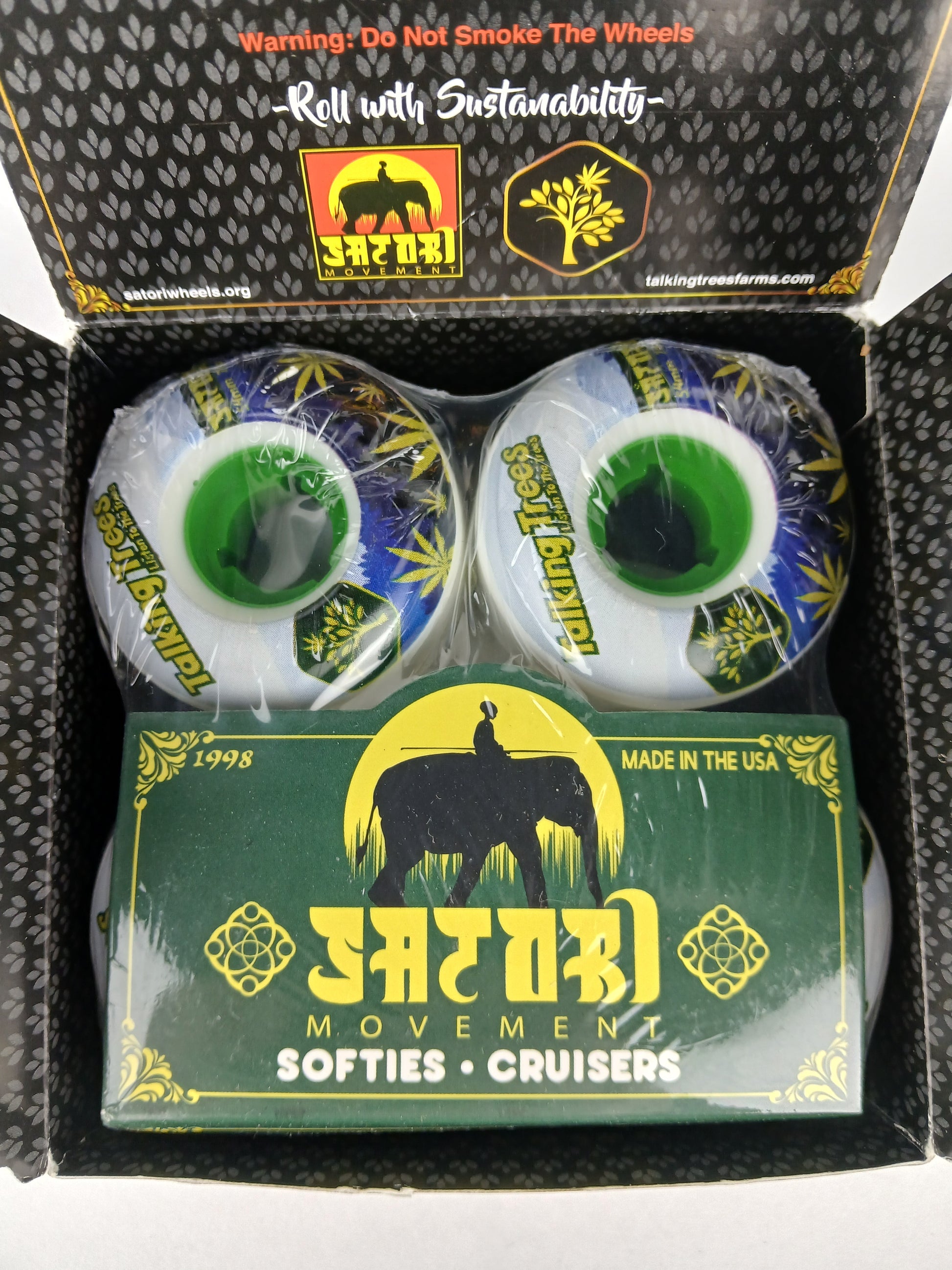 Satori Movement Talking Trees White Green Blue Size 54MM 78A Durometer Cruiser Wheels With Original Box