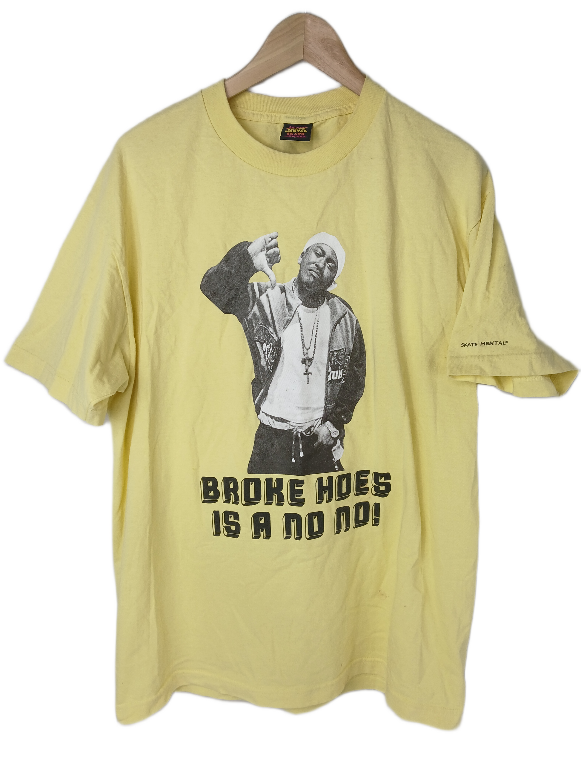 Skate Mental Luniz Broke Hoes Graphic Yellow Black White Size L S/s Vintage Shirt
