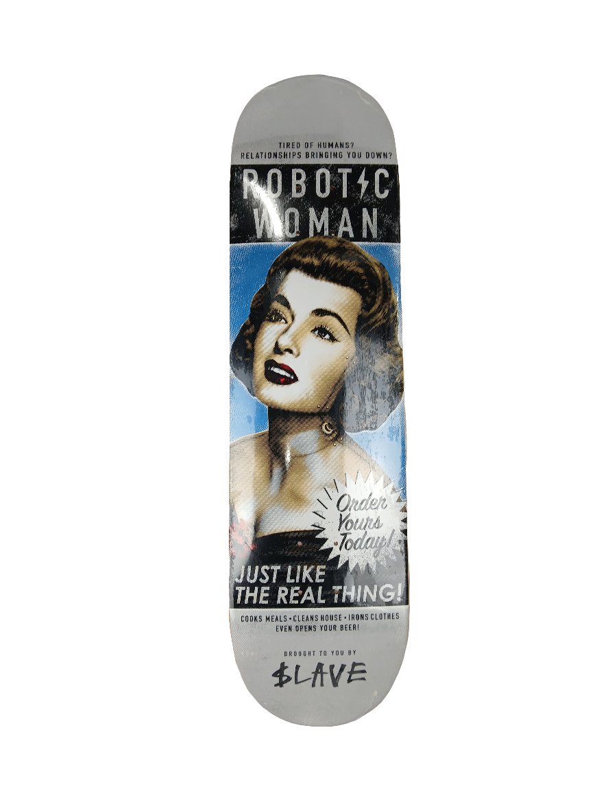 Slave Robotic Woman Silver Foil Blue Multi Size 8.25" Vintage NOS Deck