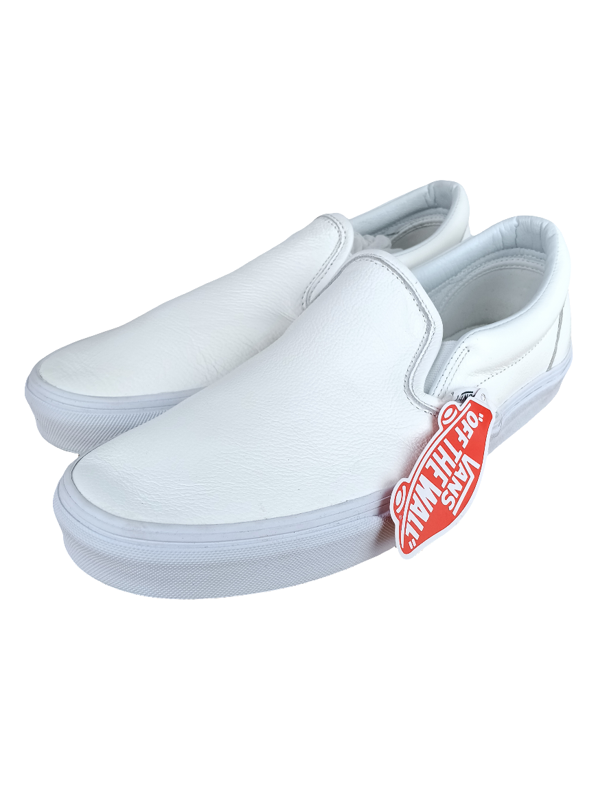 Vans Classic Slip-On Premium Leather True White Mo Mens 9.5 Shoes